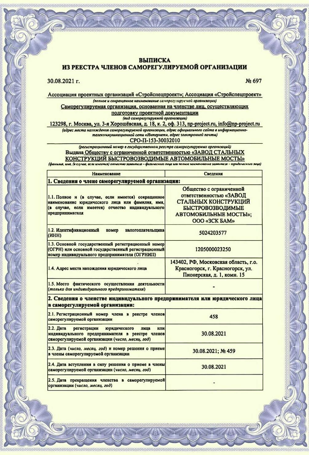 "ЗСК БАМ" входит в Ассоциацию проектных организаций "Стройспецпроект" Саморегулируемая организация, основанная на членстве лиц, осуществляющих подготовку проектной документации СРО-П-153-30032010.